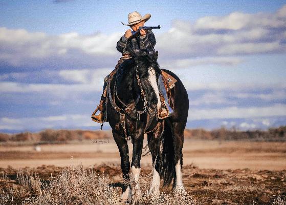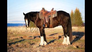 Preacher is as sweet as they come and a dream to ride! This handsome 4 year old registered Gypsy has the looks and demeanor that everyone is looking for. Preacher is sweet to be around and has an in your pocket type personality. Not only does he have the looks but he rides around flashy too. Preacher is sure footed and knows where to place his feet when navigating different terrain. He has been rode on the trails, desert, and around the ranch and in the arena. Preacher has a very easy going personality, has been easy to train and is accepting of new things. He is sacked out to obstacles, pool noodles, tarps, whips, logs, teeter todder bridge, dogs, ATVs etc. He will lope nice circles on a loose rein and has a nice smooth lope. Preacher will also ride around bride less, knows some fun tricks and will come to a mounting block for easy mounting and dismounting. We have roped the dummy extensively on him and he has heeled several live cattle. He is cowy and gets right in there for a shot. Preacher also has really nice feel a nice neck rein, spins and has a good stop on him. He is the type of horse that if you know the basics you can get along with him. He has been rode by beginner and intermediate riders and took care of them. He has also been used to pony colts and give pony rides. He is well put together, has good bone, and has good feet on him. He is very personable and loves to be with people. If he sees you out in the pasture he will come on over to say hi. Precher has been with us since he was a long yearling and is a favorite on the ranch! If you’re looking to show him off in the arena, make him a rope horse, go to events, do mounted shooting, use him on the ranch, or up the trails you can’t go wrong. He has the ability to go so many directions for any riding you choose to do. With his beautiful black color and white socks he is going to stand out in the crowd. He is easy to catch, will come to a grain bucket in a 40 acre pasture, easy to shoe, and haul. He’s as good of a gelding as one could hope to find. Preacher will sell with a clean PPE that will be done right before sale time. We welcome anyone to our ranch that would like to see Preacher before he sells. For more info call/text (208)821-2351 or (208)351-2863.