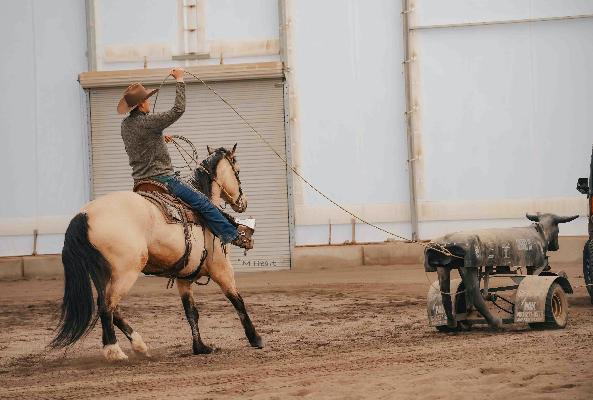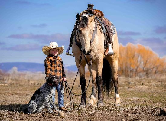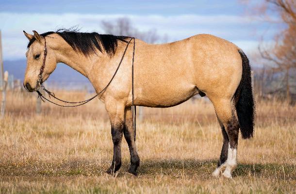 Denim is a 4 year old AQHA Buttermilk Buckskin Gelding that is as beautiful as they come. Denim has a sweet and friendly personality making him easy to catch and be around. He is well made has good bone and is easy on the eyes. Denim is light in your hands and soft and supple throughout his body. Denim has so many good qualities and gets better every time we swing a leg over him. He loves attention, and is easy to ride. If you know the basics you can get along with him. Denim is trained to come to a mounting block for easy mounting and dismounting. This gelding is no stranger to a days work and has been rode out on the trails, desert around the ranch and in the arena. Not only is Denim nice to watch in the arena but he knows how to maneuver his way around rocks, logs, brush, and other obstacles, and does it with ease. He is sure footed and careful when placing his feet. Denim picks up his leads, turns around nice, has a good stop to him and lopes nice circles on a loose rein. We have tracked the dummy with him and he is picking it up and wants to put you there. He would make a nice roping prospect, take him to events, do mounted shooting, use him on the ranch, or taking him up the trails you can’t go wrong. Denim is a gentleman to be around, has good manners on the ground and in the saddle. Denim is no stranger to obstacle courses, whips, tarps, noodles, plastic bags, ropes, dogs etc… Denim handles them all calmly and with ease. We have had different riders on him and he handles them all with care. Denim has a great mind on him has and has been very trainable. We have enjoyed having him in our program. He will be one that anyone you put on him will be able to ride. Denim has so many good years left to give and has the foundation to excel in any discipline you choose. He is good with his feet, trailers and hauls. Denim is patient and kind and will be a great asset to anyones operation or family. Denim will sell with a clean PPE that will be done right before sale time. We welcome anyone to our ranch that would like to see Denim before he sells. For more info call/text (208)821-2351 or (208)351-2863.