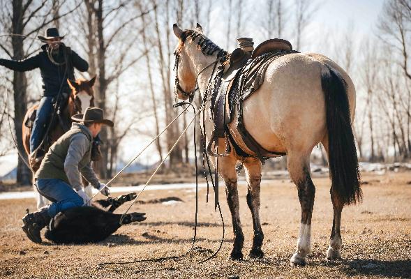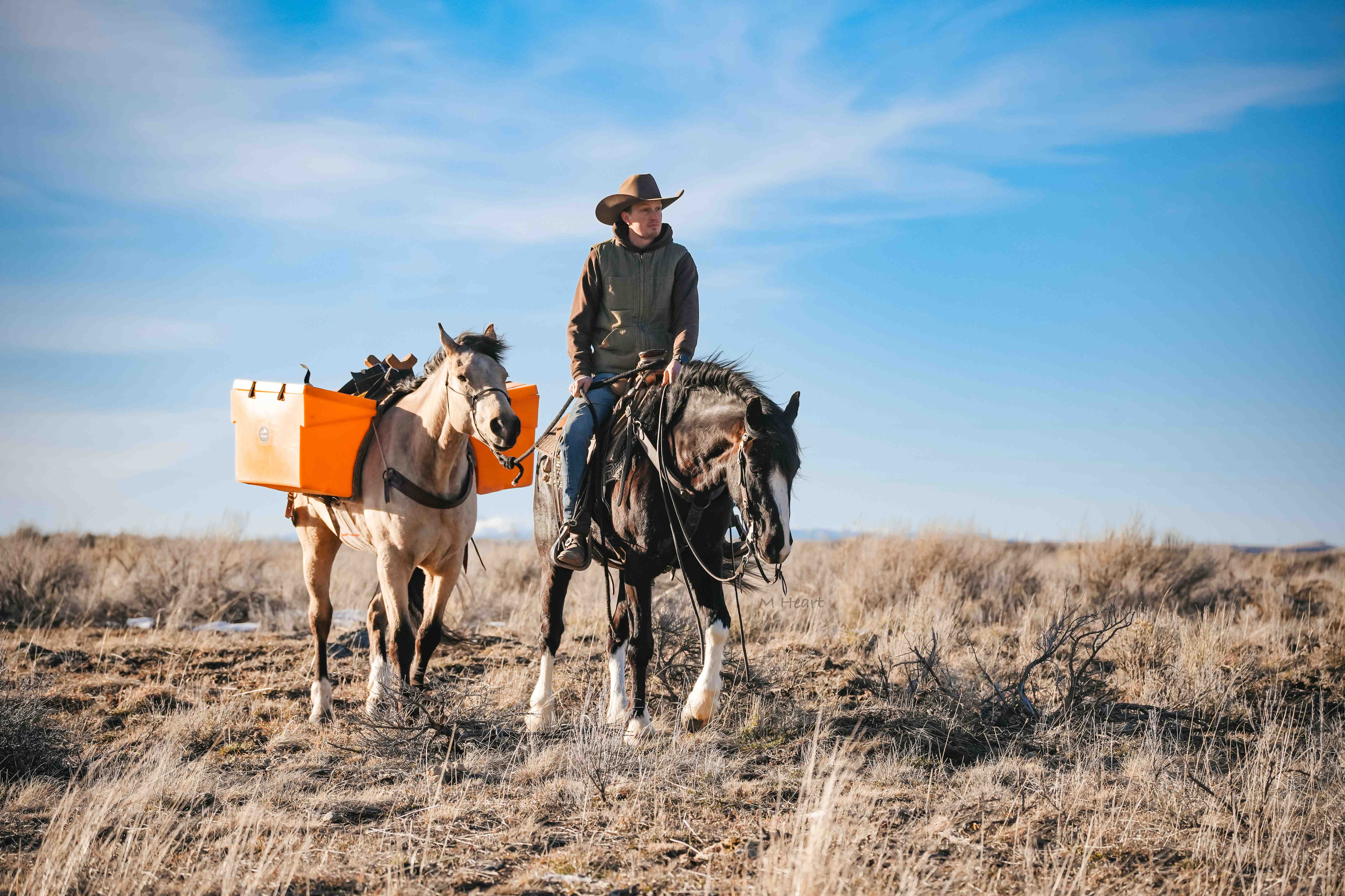 Goose is a true unicorn that everyone is after. Not only is Goose a beautiful Buttermilk Buckskin, he is also a quarter draft cross. Although he has a little draft in him Goose has the build and comfort of a quarter horse. Goose is suited to be a good all around gelding that is the perfect gentleman for anyone that is just learning to ride all the way up to anyone who needs to go get a job done. Goose is in the prime of his live at 5 years old. He is calm, quiet, willing, and easy going when it comes to new things. He’s been exposed to tarps, whips, plastic bags, ropes, cars, flags, dogs, 4 wheelers… you name it and he’s probably seen it. Goose has a slow lope picking up the correct leads making him smooth and easy to ride. Goose is very forgiving of young riders making him even more of rarity when it comes to a horse you can trust to put anyone on. Goose has been ridden by all ages, and skill levels from novice to advance riders. This gelding has seen many miles up in the mountains, on the trails, or just out for a nice evening ride. Goose has also been used in a more upbeat environment. He has tracked and roped the dummy and is lightly started on heading and shows lots of potential if you choose to go that direction. Goose handles any situation like a true gentleman and always aims to take care of who’s on his back. Goose has a nice one hand neck reign, lopes on a loose rein, stop and back up with ease. Goose is an honest horse with the sweetest personality. He is always the first to meet you at the gate and loves the attention of little kids. Especially when he know he gets extra grain. Goose is a well seasoned gelding with a nice handle who does what’s asked of him and is the same horse every time you pull him out. He knows how to navigate all different terrain and is sure footed. Goose is also trained to come to a mounting block, tree stump or whatever you need for easy mounting and dis mounting. This gelding is one of our favorites. He will always catch someone’s eye and get you noticed. Goose is patient, has good ground manners and is a true unicorn. Horses like Goose don’t come around very often he’s a rare gem and as good as anyone could hope to find in a lifetime partner and friend. Goose will sell with a clean PPE that will be done right before sale time. We welcome anyone to our ranch that would like to see Goose before he sells. For more info call/text (208)821-2351 or (208)351-2863.