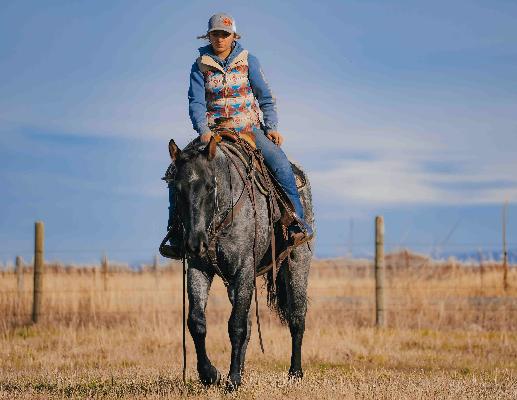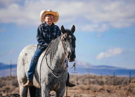 Boss is as sweet as they come and a dream to ride! This handsome boy has the looks and demeanor that everyone is looking for. Boss is very sweet to be around and has an in your pocket type personality. Not only does he have the looks but he rides around flashy too. We purchased Boss as a weanling and he has grown up in our program where he has been handled and made to be a gentleman. Boss is sure footed and knows where to place his feet when navigating different terrain. He has been rode on the trails, desert, around the ranch and in the arena. Boss has a very easy going personality and has been easy to train from the beginning. He is accepting of new things. Boss will come to a mounting block for easy mounting and dismounting. He is also sacked out to obstacles courses, pool noodles, tarps, whips, logs, tedder todder bridge, ATVs, dogs etc. He will lope nice circles on a loose rein, turning around nicely, and has a good stop on him. Boss is wise beyond his years and you wouldn’t think he is just 3 years old. He is the type of horse that if you know the basics you can get along with him. Boss has been on the dummy tracking and roping both ends. Boss comes from great stock. He has had many fully and half siblings that have gone on to compete competitively in Canada pro rodeo circuit. This gelding really is a clean slate with a great foundation to take him any direction. Although Boss has the ability to be competitive we have kept him on the quieter side for now. Boss loves attention, loves to be groomed and fed grain by the kids. We have also let our kids ride him around in the arena and around the ranch. We’ve give lessons on him, used him to pony colts, and give pony rides. Boss is a true gentleman with an amazing mind that wants to please and take care of who’s riding him. Boss is the real deal!! This gelding is one in a million and worth his weight in gold. He is well put together, has good bone, is straight and correct, and has good feet on him. He has your true ranch horse build and look to him. Boss is one of our favorites we’ve brought up. If you’re looking to show him off in the arena, make him a rope horse, go to events, do mounted shooting, use him on the ranch, or up the trails you can’t go wrong. He has the ability to go so many directions for any riding you choose to do. He’s AQHA registered and stands 15.1 hands with his beautiful blue roan color he is sure to get you noticed wherever you take him. He is easy to catch, will come to a grain bucket in a 40 acre pasture, good with his feet and to haul. Boss is one we are proud to offer. He embodies every attribute of the kind if geldings we strive to train and raise. Boss will sell with a clean PPE that will be done right before sale time. We welcome anyone to our ranch that would like to see Boss before he sells. For more info call/text (208)821-2351 or (208)351-2863.